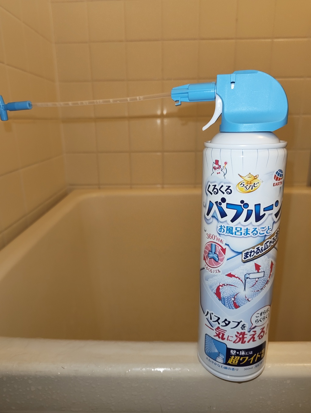 ついに風呂掃除も自動化!『くるくるバブル』が勝手に泡を広げてくれるので、私のズボラ魂が歓喜しています。ただ、勢いよく回って泡を噴射する分、石鹸の香りが結構強めに漂います。 香料が苦手な方や、香りに敏感な方は、し …もっと見る っかり換気を回しながら使うのが安心かもしれません。仕上げの防カビスプレーまでセットで使えば、カビとの格闘からは完全に卒業できそう!アースさん、私の怠け心を分かってますが、香りのパンチもなかなかでした。