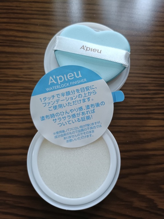 ハートのパフが可愛いです。スポンジにエキスが染み込ませてあるので、それをパフに取ってお顔に塗る感じです。パウダータイプだと勝手に思い込んでいましたが違っていて、私には初めての体験です。確かに使用するとヒンヤリ感 …もっと見る があります。持ちが良いかどうかは、これからの気候次第です。