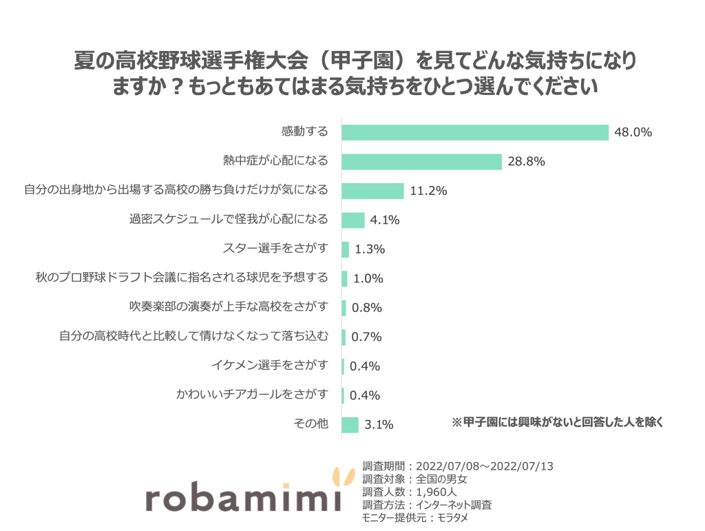 【夏の高校野球選手権大会(甲子園)を見てどんな気持ちになりますか?第2位】熱中症が心配になる