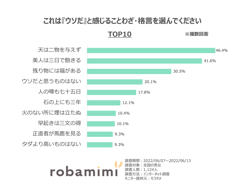特にインターネットが普及している現代だからこそウソだと感じる、という声が多くあがったことが印象的でした。そう考えると、この先の未来では、さらに「ウソ」認定されることわざが増えそうですね。