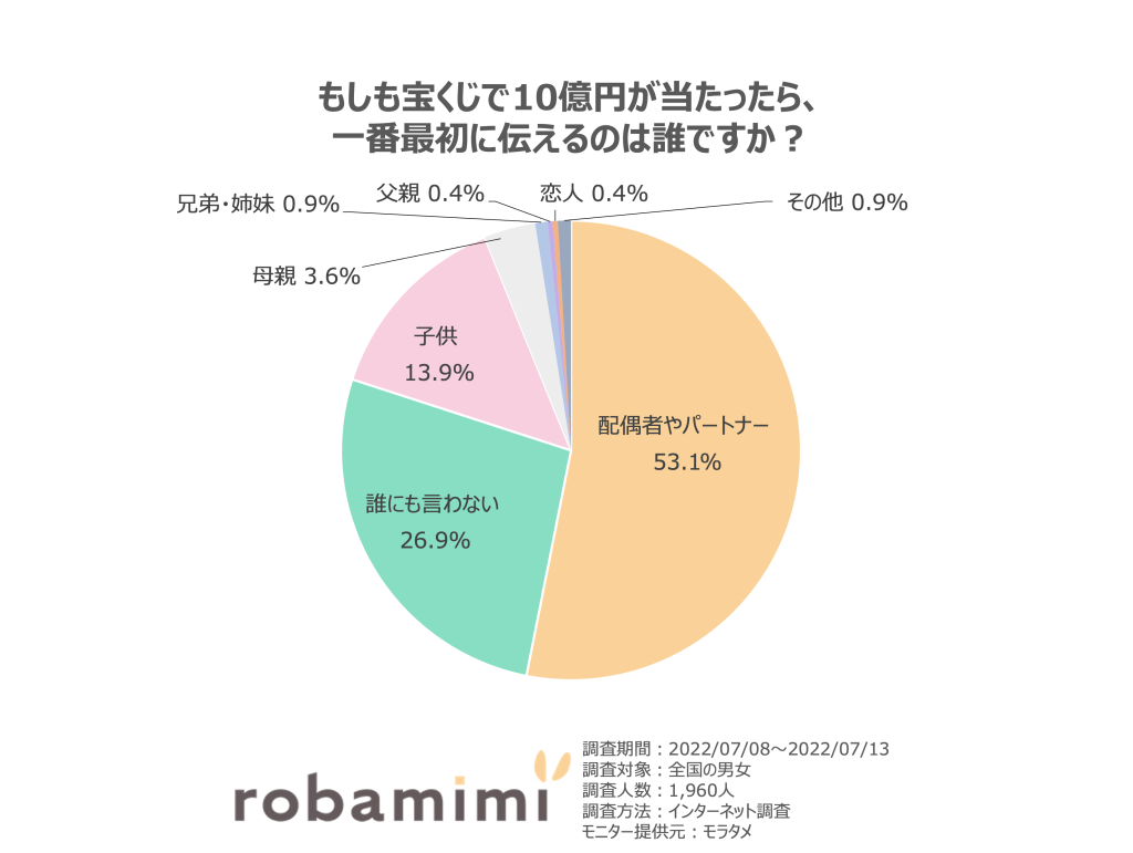 【もしも宝くじで10億円が当たったら、最初に伝えるのは誰ですか?第1位】配偶者やパートナー