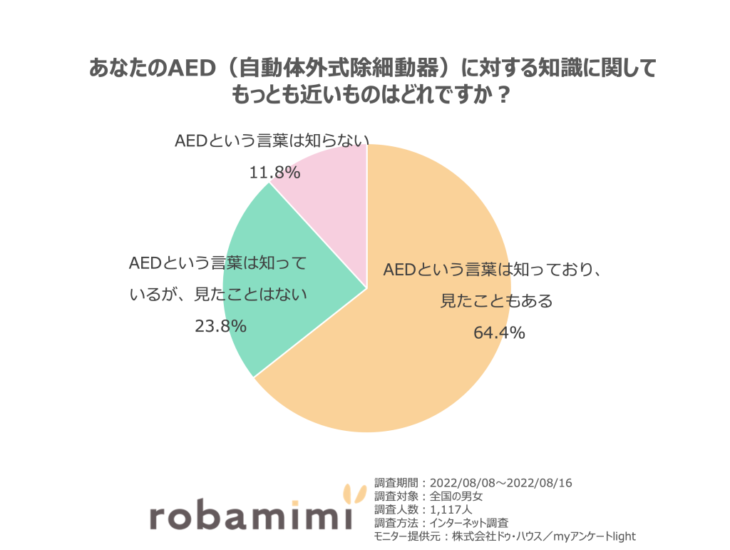 AEDという言葉は知っており、見たこともある 64.4%