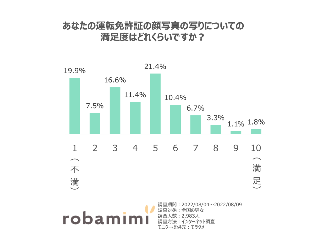 \ロバ耳アンケート/ あなたの運転免許証の顔写真の写りについての満足度はどれくらいですか? あなたはどう思いますか?!? 世間で話題になっているコトや人に聞けない実は気になる話題を モラタメの新メディア「ロバ耳」が大調査! 撮影時○○○を持ち込む人も・・・