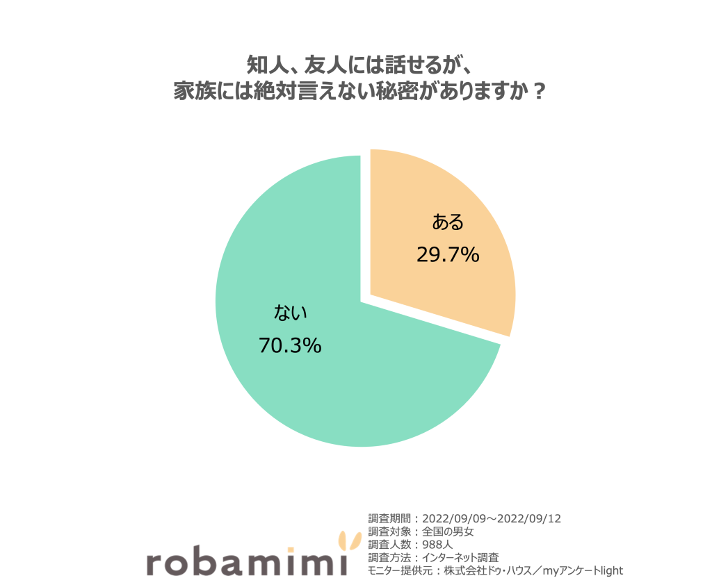 約3割の人が、いくら仲のよい家族でも言えない秘密を抱いているということがわかりました。