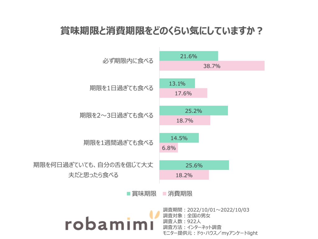 賞味期限は、「おいしく食べることができる期限」であり、消費期限は「期限を過ぎたら食べないほうがよい」とされているため、そのルールに則っている人が多いようです。