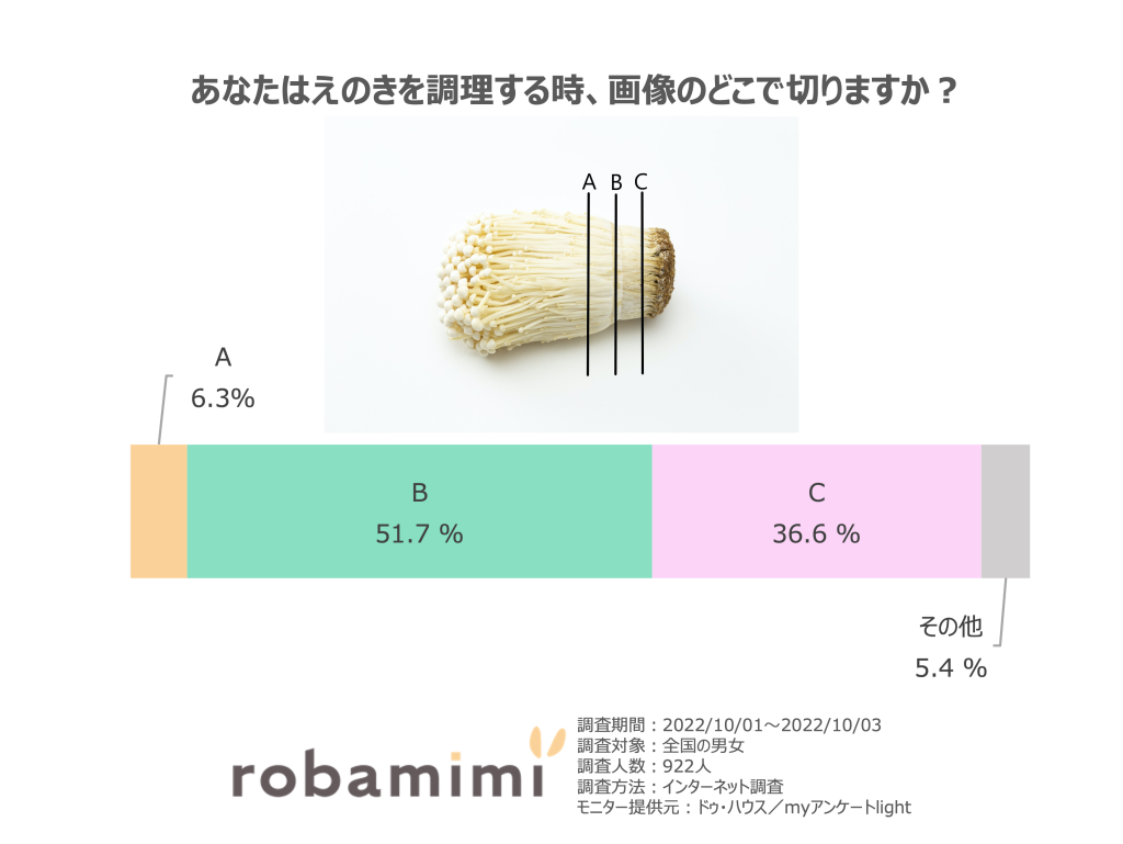 えのきを調理するとき、Bで切る派:線がある、ちょうどいい!中にはCが正しい場所と知っている人も