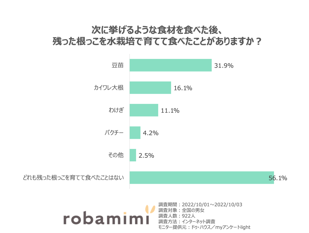 約4割の人が残った根っこを水栽培で育てて食べたことがある、と回答する結果になりました。