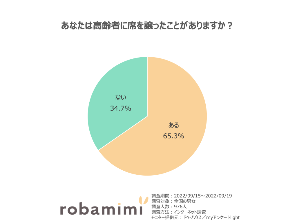 「高齢者に優先席を譲ったことがある」と回答した人が約7割を占める結果に。