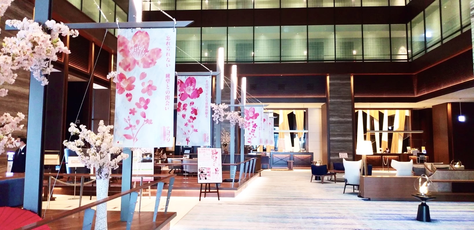 実際に名古屋プリンスホテルスカイタワーのロビーを装飾した際の様子